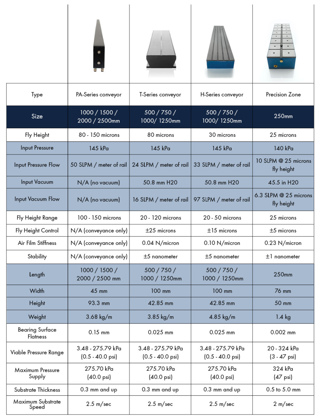 New Way Air Bars 提供四種不同等級的產品系列,可依據不同應用需求與精度要求,提供最合適的控制能力: