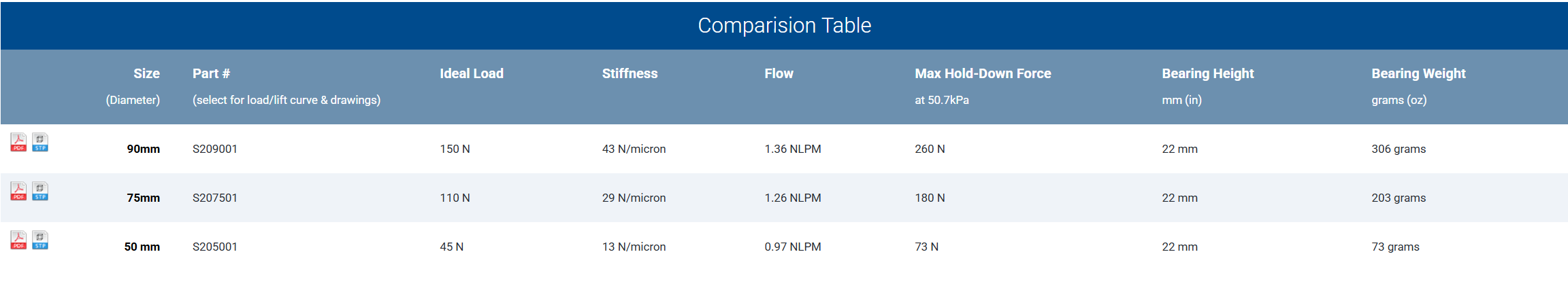 New Way 氣浮軸承提供 真空預壓型氣浮軸承,讓您能更精確地控制浮升高度與氣隙剛度。